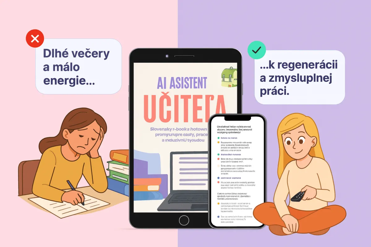 AI je skvelý sluha, ale zlý pán. E-book je postavený tak, aby ti pomáhala s rutinou – nie s tým, čo je jadrom tvojej práce: vzťah so žiakmi, vysvetľovanie, podpora.